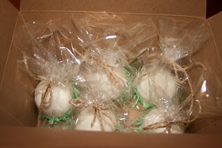 Take a cake pop and squeeze the bag moving your hand back and forth down the cake pop. You can leave it just on a single side or you can repeat for all sides. Wallah! Cake Pop Extraordinaire!